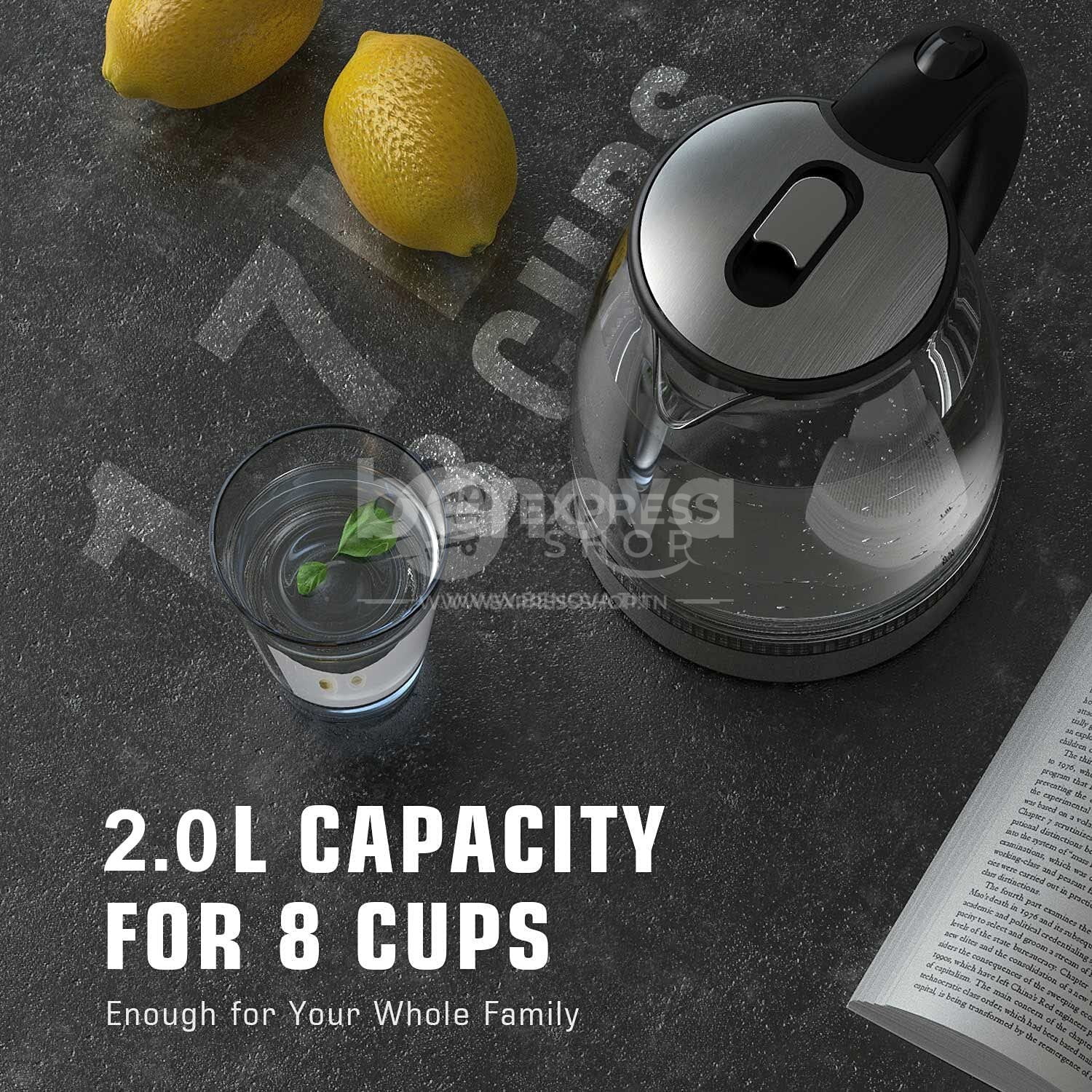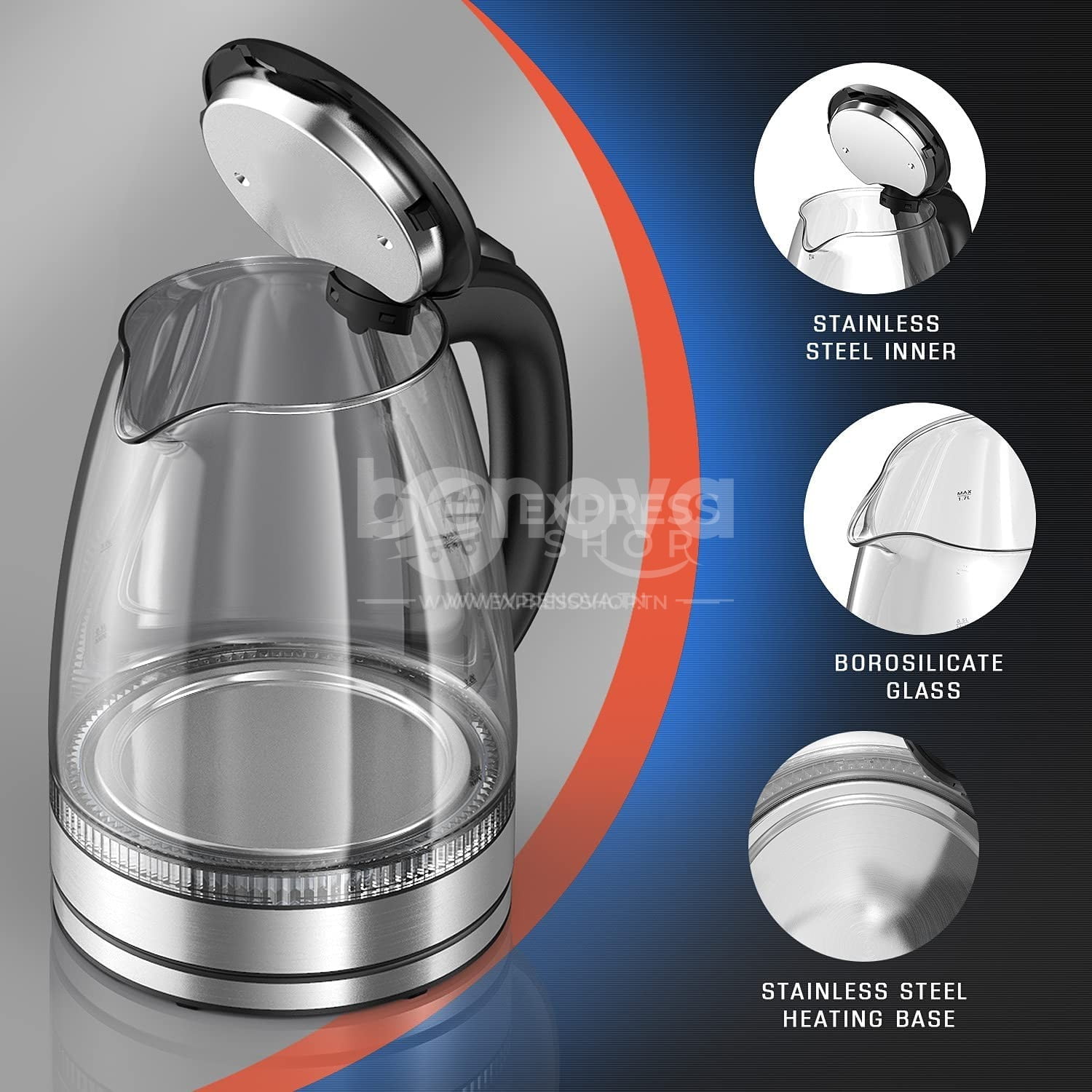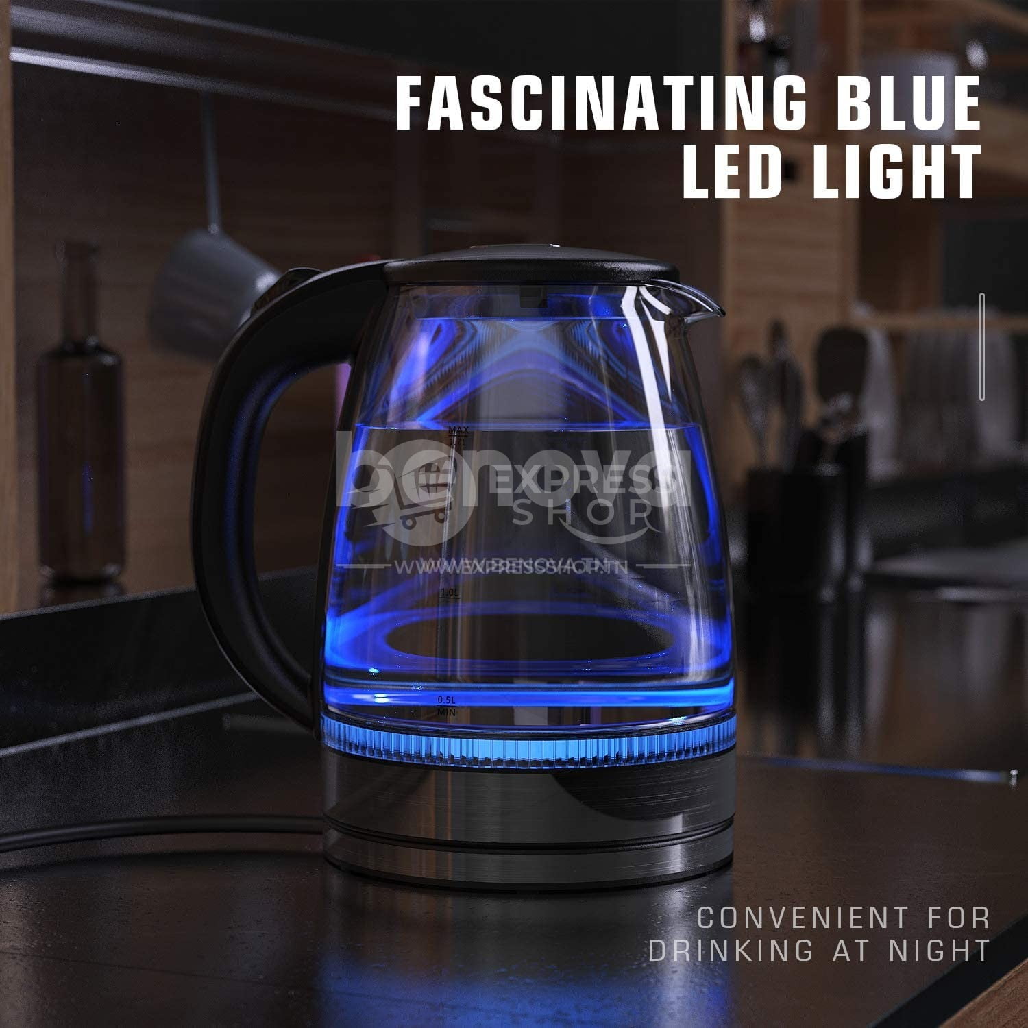 Indicateur DEL bleu : la lumière bleue s’allume lorsque l’eau est bouillante, et vous pouvez voir exactement ce qui se passe dans la bouilloire à travers le verre.