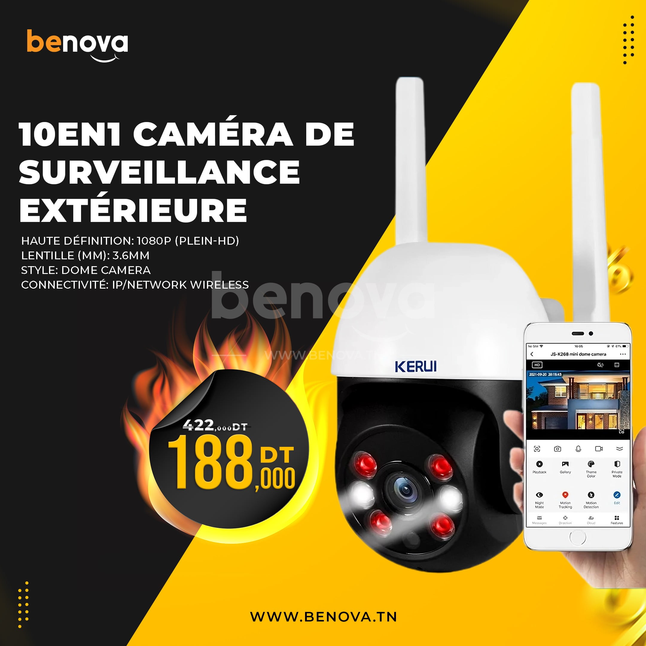 - Distance d’IR (M): 10-20 meters
