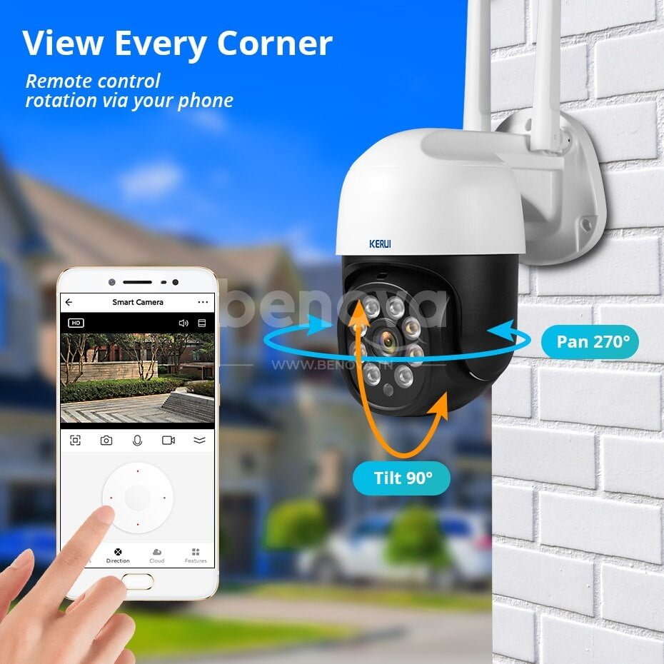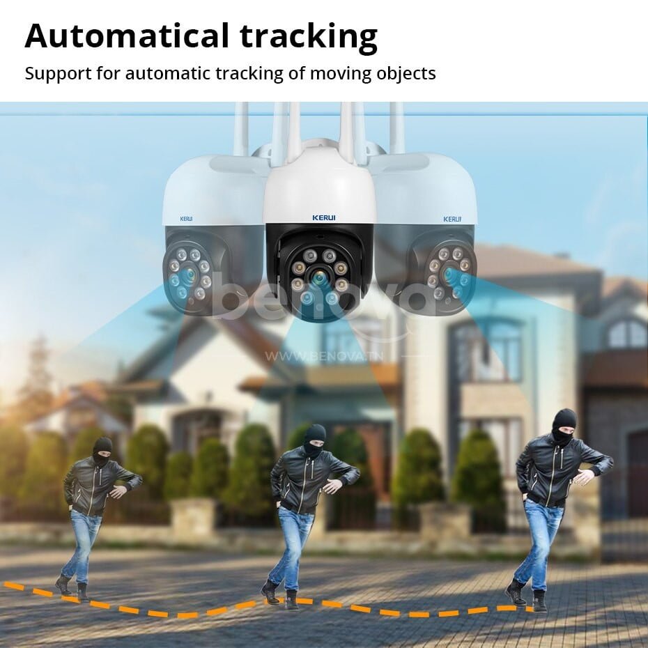 KERUI – 10en1 Caméra de Surveillance extérieure PTZ IP WIFI HD 3MP/1080P sans fil avec fonction de Rotation détection de mouvement et alerte