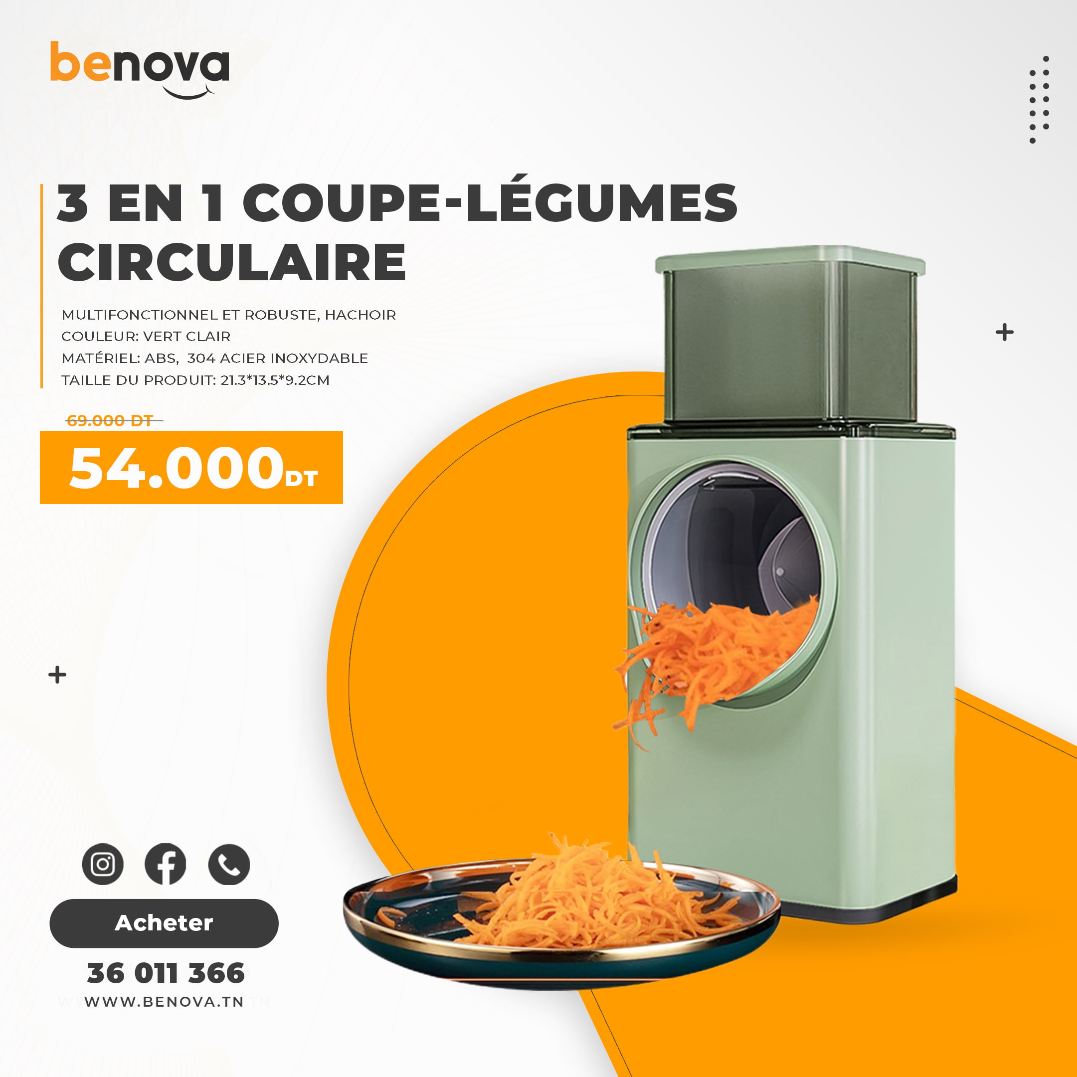 3 en 1 Coupe-légumes circulaire multifonctionnel et robuste, hachoir, râpe, outil de cuisine