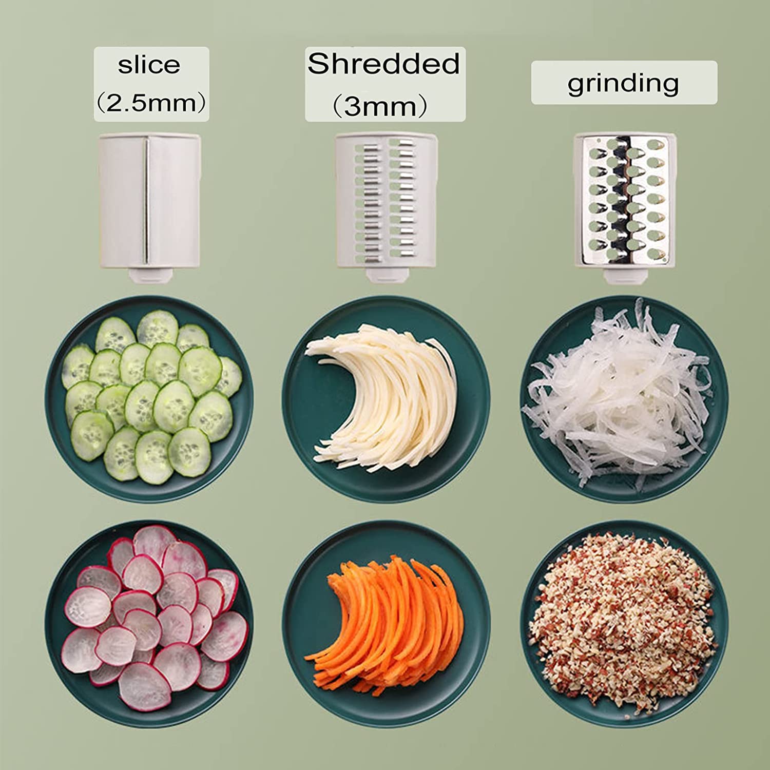 - Peut accueillir des ingrédients de plus grande taille, parfait pour couper des concombres, des carottes, des pommes de terre, des oignons, du fromage, des arachides, des amandes, et plus encore pour faire de délicieuses salades, soupes, pizzas, desserts, etc.