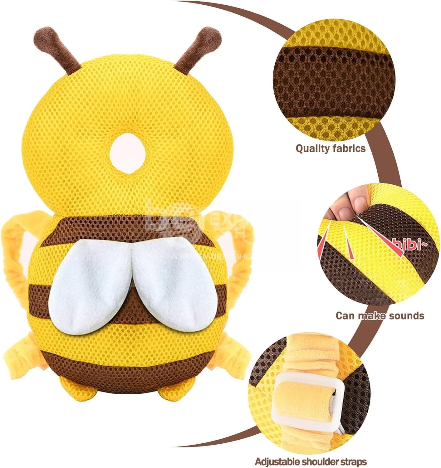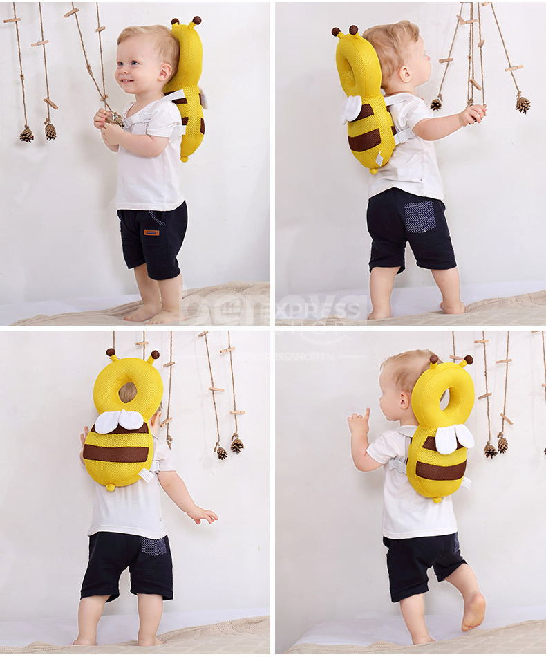 - La taille peut être ajusté et le matériau doux + flexible est utilisé, ce qui peut soulager efficacement les chocs et protéger la tête et le dos du bébé en cas de chute.