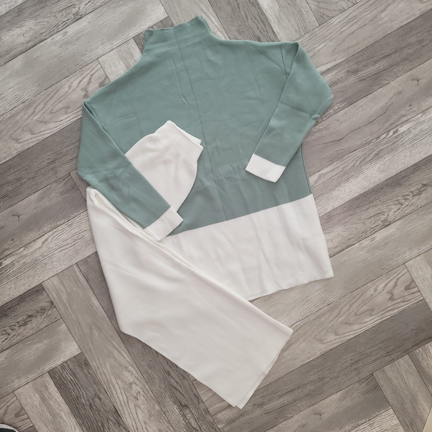 Ensemble de 2 pièces pour femmes, pull Long vert clair, pantalon blanc