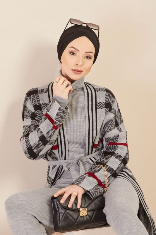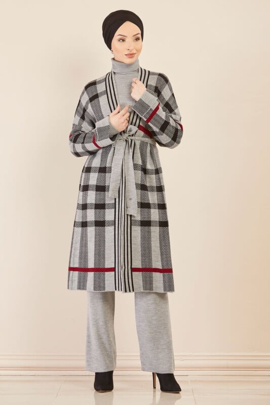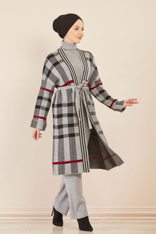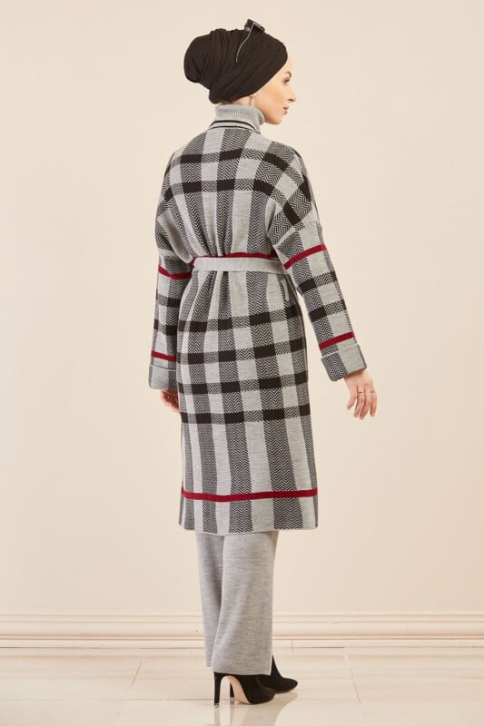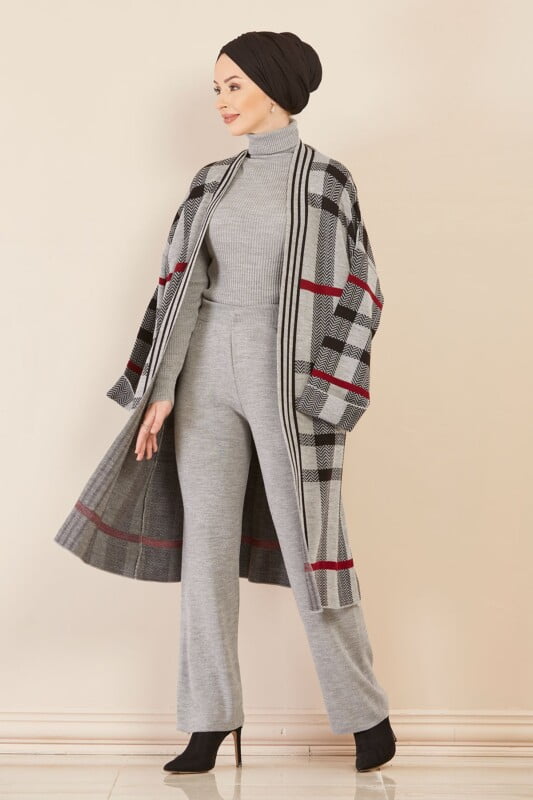 Ensemble de 3 pièces pour femmes à carreaux gris