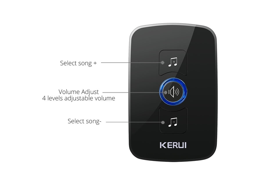 - La sonnette sans fil adopte une technologie avancée de réception et d’envoi sans fil, un système de contrôle puissant par micro-ordinateur, une haute capacité et une technologie de traitement vocal supérieure, jusqu’à 32 chansons avec des performances fiables et stables.