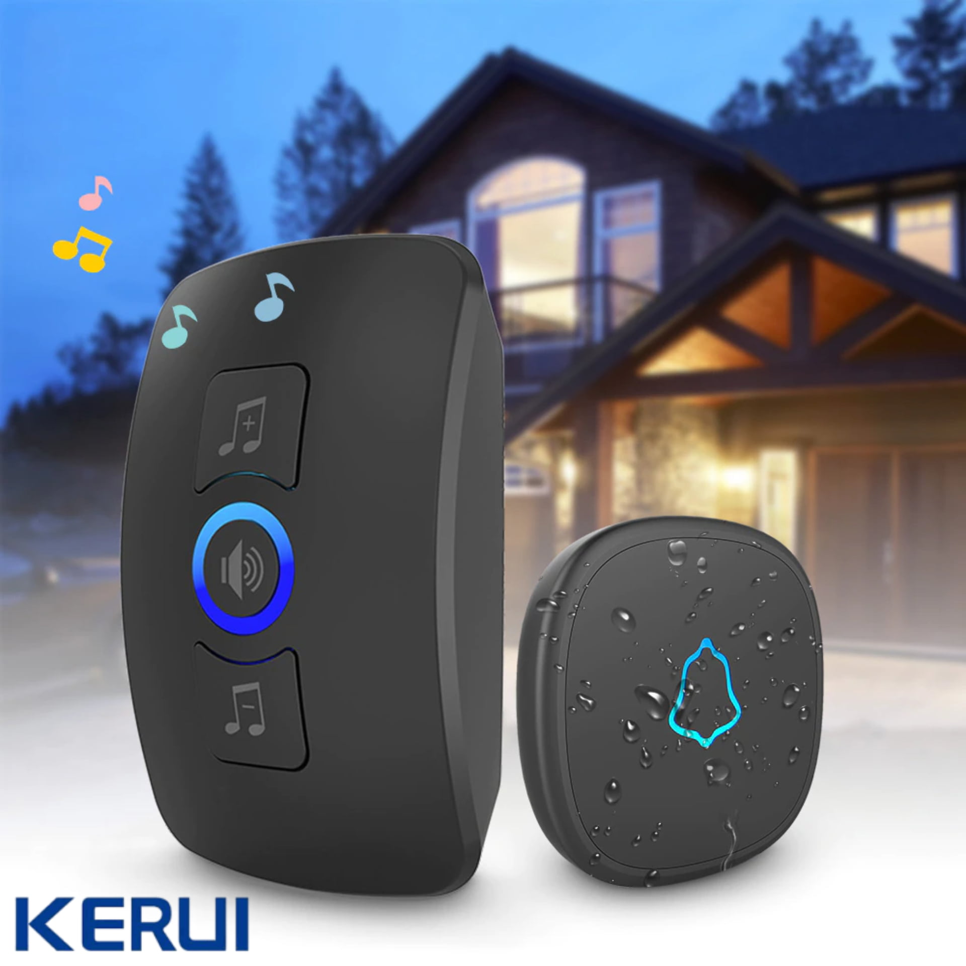 KERUI – sonnette intelligente sans fil imperméable à l’eau, alarme de sécurité à domicile, lumière LED