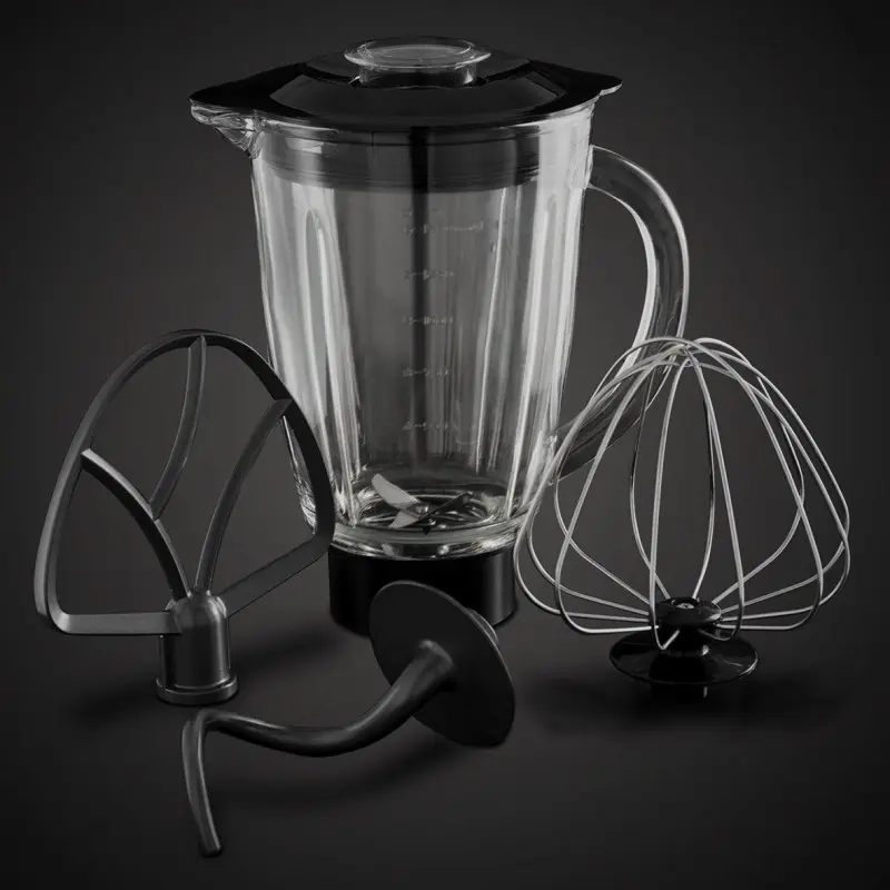 3 Accessoires de pâtisserie inclus: Crochet pétrin / Batteur à pâtes lourdes / Fouet pour les préparations légères