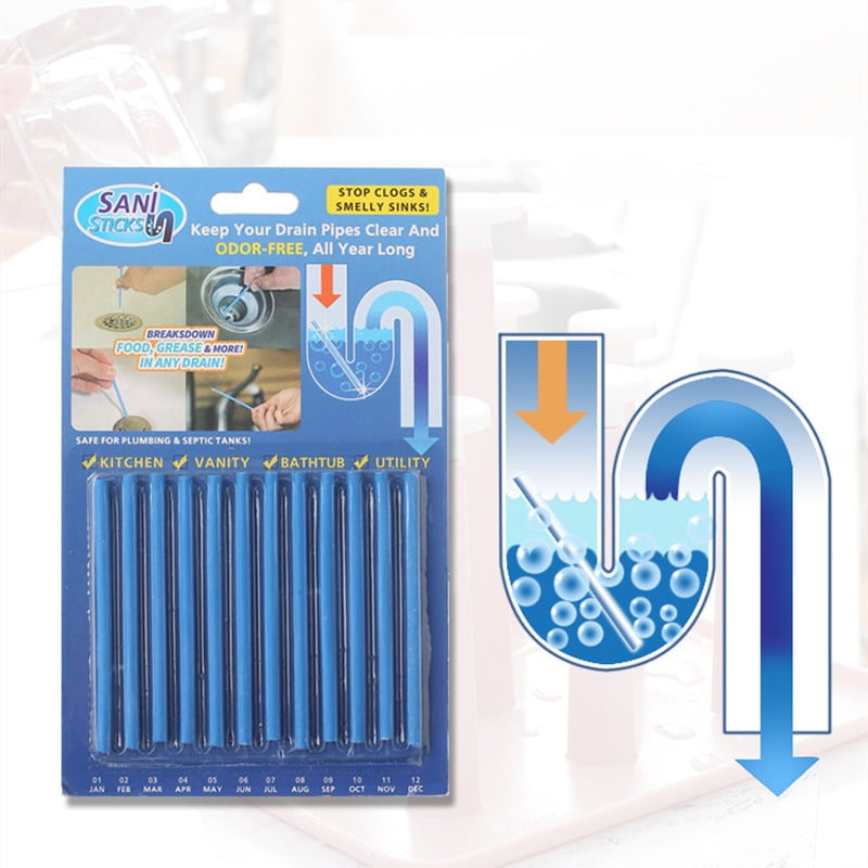 12 Sani Sticks Bâtons de nettoyage et deblocage de canalisations pour évier Multifonction