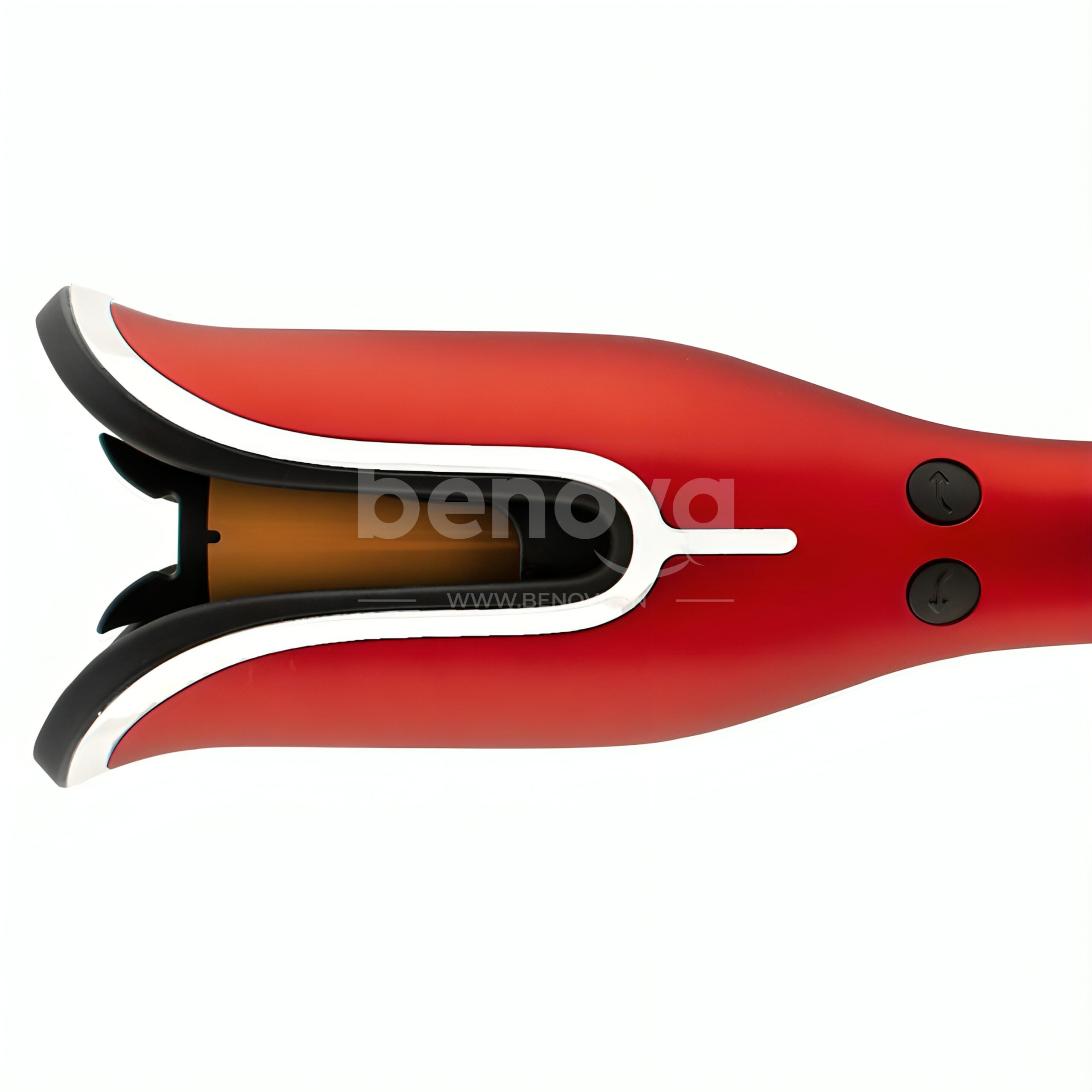 - Une fois en place, le bigoudi tirera automatiquement les cheveux dans sa chambre doublée de céramique, où ils resteront en place jusqu’à ce qu’ils soient chauffés.